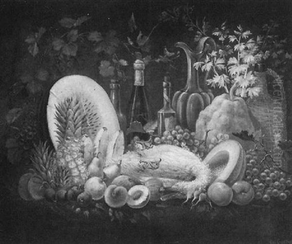 Beautiful Table Top Still Life With Fruit, Wine And Goose