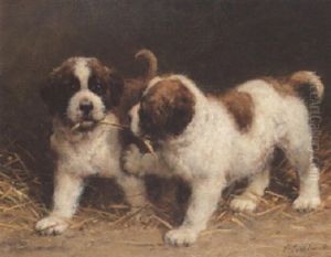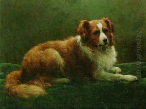 A Morning Outing; A Young Girl In A Rally-cart On A Sandy Track With A Collie In The Foreground