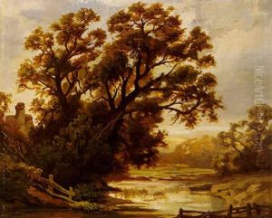 Bewaldete Landschaft Mit Bauerin Am Teich