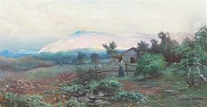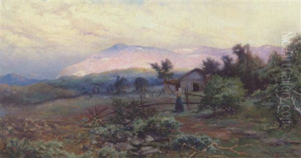 Dalstraekning Med Bondepige Ved En Gard