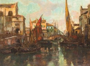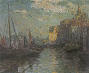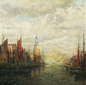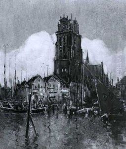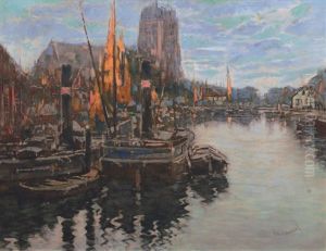 Hollandische Kanallandschaft Mit Reicher Bootsstaffage Und Machtiger Kirchenanlage