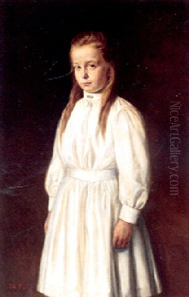 Portraet Af Lille Pige I Hvid Kjole