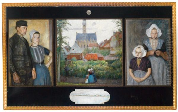 Father And Mother To The Left, Veere City Hall In The Centre, Two Daughters To The Right (triptych)