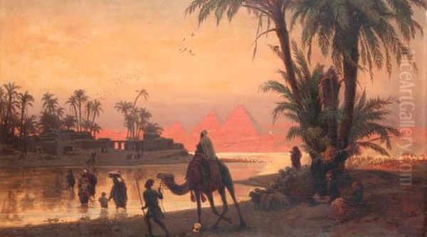 Bring the timeless beauty of Otto Johann Heinrich Heyden's The River Nile With The Gizeh Pyramids into your home with a handmade oil painting reproduction. Carefully recreated on canvas by skilled artists using traditional techniques, this piece captures the delicate brushwork, subtle light, and vibrant color of the original masterpiece. With museum-level quality and rich texture, it brings elegance and artistic depth to any space. Enjoy free shipping and make this masterpiece a part of your personal collection.