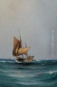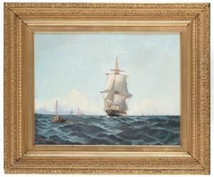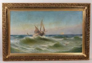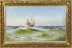 Segelbat I Oroligt Hav, Signerad L. Richarde