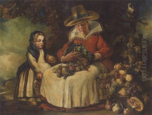 Flamische Fruchteverkauferin Oil Painting by Otto Maria Porsche