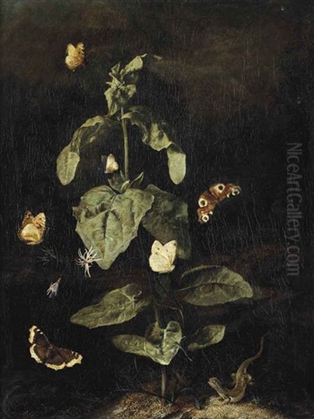 A Forest Floor Still Life With A Grand Surprise (nymphalis Antiopa), A Large Tortoiseshell (nymphalis Polychloros), A Small White (pieris Rapae)...