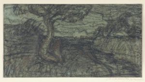 Landscape With Trees. Charcoal And Red Chalk On Paper. - Minimally Stained
