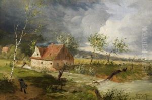 Moorbrucke - Landschaft Mit Bauerin Und Hausern
