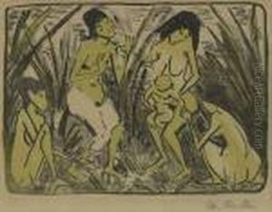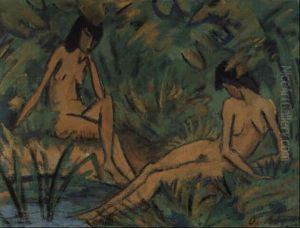 Zwei Badende Im Bach