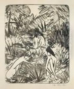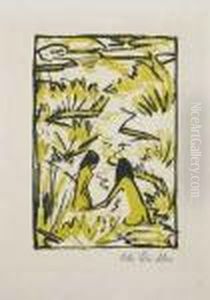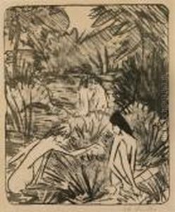 Ein Sitzendes Und Ein Kniendes Madchen Unter Blattern (badende)