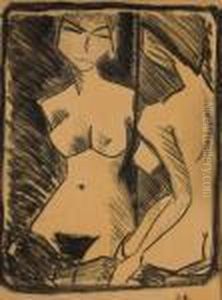 Madchen Mit Grunem Schal (elfriede Timm) / Stehender Madchenakt (maschka Mueller) (beidseitig Bemalt)