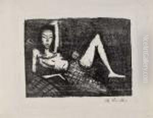 Madchen Auf Dem Kanapee Oil Painting by Otto Mueller