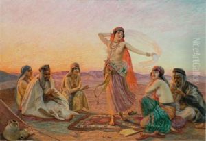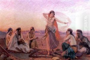 An Arab Girl Dancing With Onlookers In A Desert Encampment