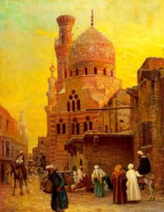 Arab Street Scene With Mosque
