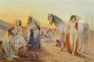 Orientalische Szene Vor Den Pyramiden Von Gizeh