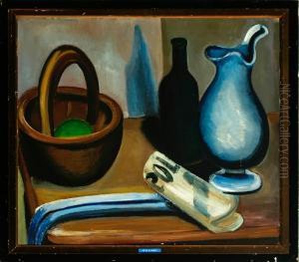 Stilleben With Jug, Bottle, Bowl And Newspaper