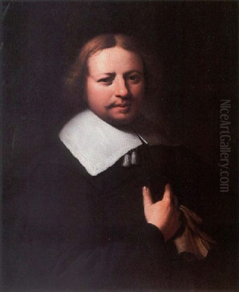 Portrait Of A Gentleman Wearing A Black Tunic And White Lace Collar, Holding A Glove In His Right Hand