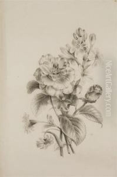 Deux Etudes Representant Des Branches De Rosiers; Et Une Rose