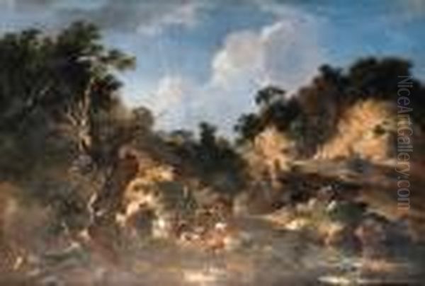 An Italianate Landscape With A Hunting Party