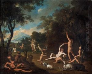 A Young Woman Holding A Glass Of Wine With Two Companions Making Music Before A Stone Arch (+ A Young Peasant Woman With Her Child And Other Peasants Seated At The Foot Of A Tree; Pair)