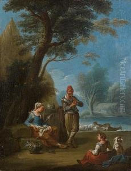 An Italianate Landscape With Peasants Makingmusic
