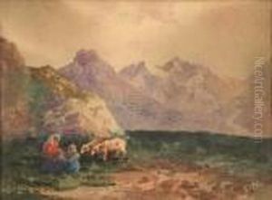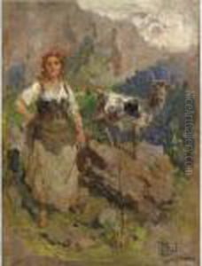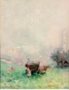 A Young Boy With Two Turkeys Signed 'paolo Sala' , Oil On Board