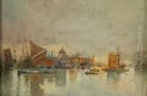 Attr. "scorcio Del Tamigi" 1920. Acquerello Firmato, Iscritto "londra" E Datato In Basso A Sinistra. In Cornice