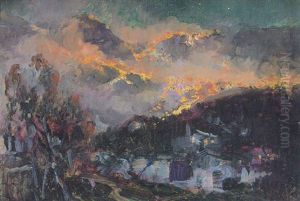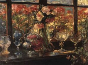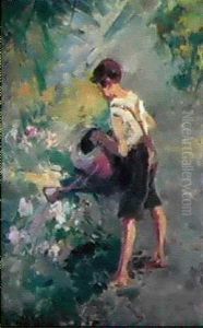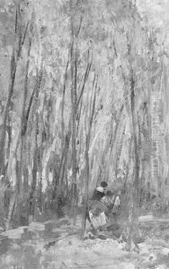 Figures On A Terrace Beside A Fountain, A View Of Rome Beyond