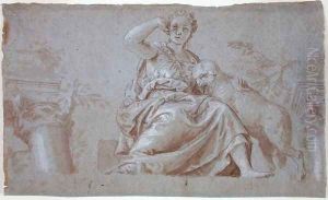 A Study Of A Seated Woman Seen From Below, And Another Study Ofher Head
