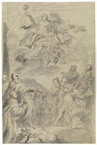 Studie Nach Dem Verschollenen Deckenfresko "s. Benedetto Riconosce Rigo Sotte Le Spoglie Di Totila" In Der Abtei Monte Cassino
