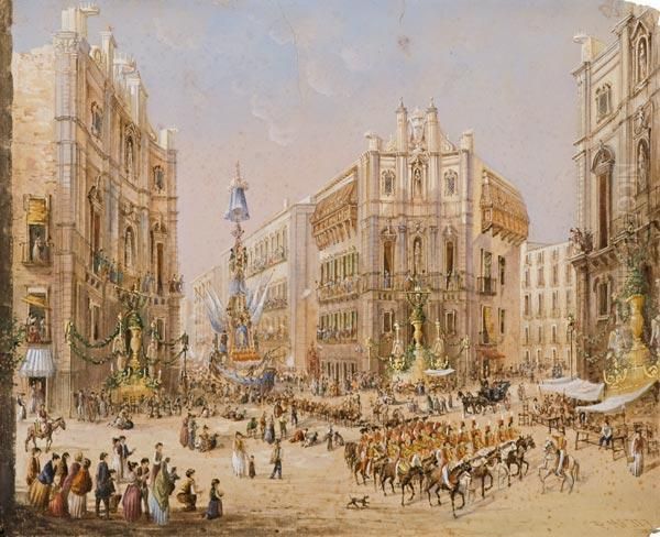 Bring the timeless beauty of Pasquale Mattei's La Festa Di Santa Rosalia A Palermo into your home with a handmade oil painting reproduction. Carefully recreated on canvas by skilled artists using traditional techniques, this piece captures the delicate brushwork, subtle light, and vibrant color of the original masterpiece. With museum-level quality and rich texture, it brings elegance and artistic depth to any space. Enjoy free shipping and make this masterpiece a part of your personal collection.