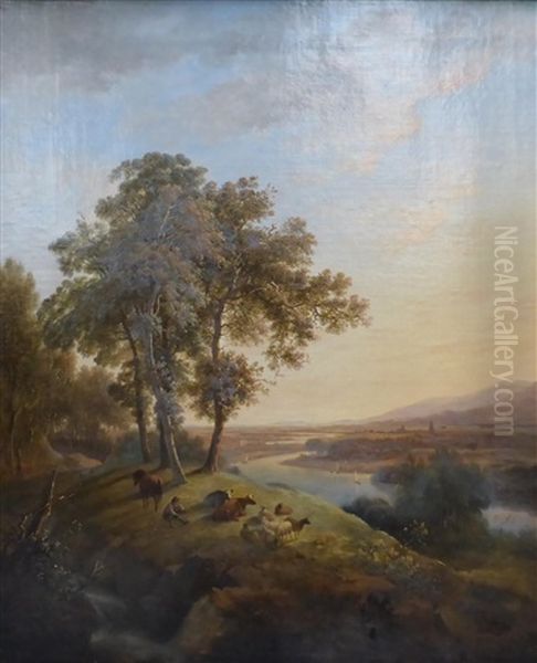 Resting Figures With Livestock In An Extensive Summer Landscape