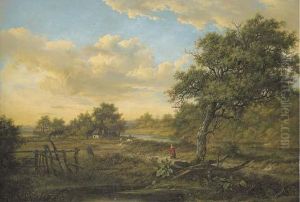 A Wooded Landscape With Cattle And A Figure In Front Of Abyre