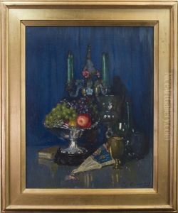 Still Life Of Grapes And An Apple In A Tazza, A Chalice And A Goblet With A Candelabra