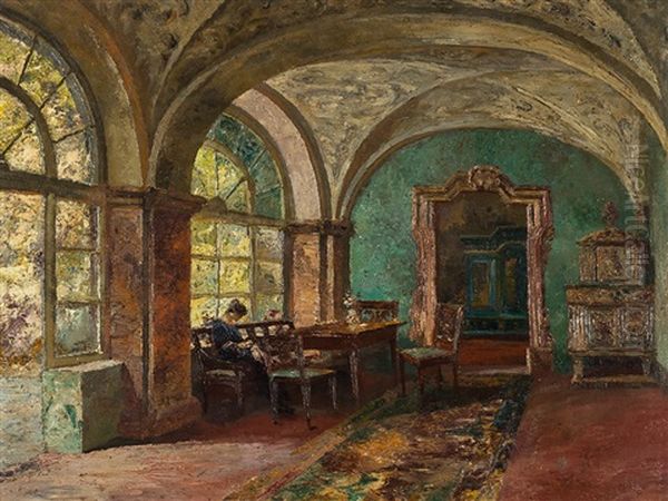 Interior With Lady Oil Painting by Paul Barthel