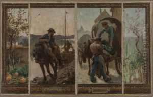Histoire du ble : labours, semailles, hersage : Esquisse pour la salle de dessin de l'ecole de la rue Dombasle, 15eme arrondissement de Paris