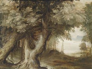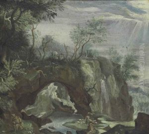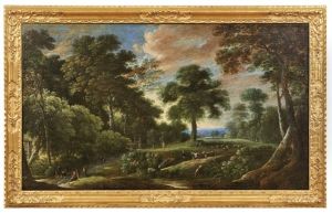 A Wooded River Landscape With Figure Being Baptised