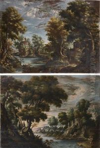 A Shepherd Resting With His Flock Before An Extensive River Landscape; And Figures On The Shore Before An Extensive River Landscape (2)