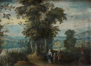 An Extensive Landscape With Tobit, Tobias And The Archangel Raphael