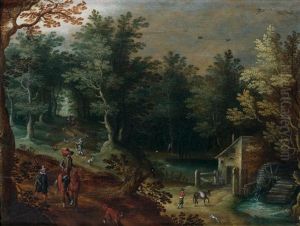A Wooded River Landscape With Villagers Conversing
