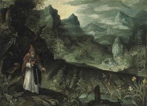 An Extensive Landscape With Saint Anthony Abbot Before His Field Of Crops