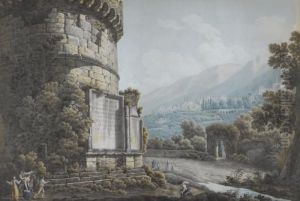 Capriccio Of The Via Appia Antica, Near Rome, With The Tomb Ofcecilia Metella And The Claudian Aqueduct