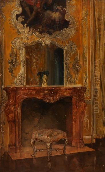 Schlossinterieur Mit Kamin, Trumeaux Und Tabouret