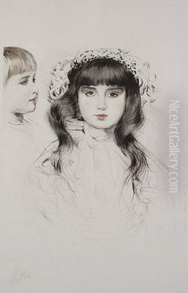 Deux Tetes D'enfants Oil Painting by Paul Cesar Helleu