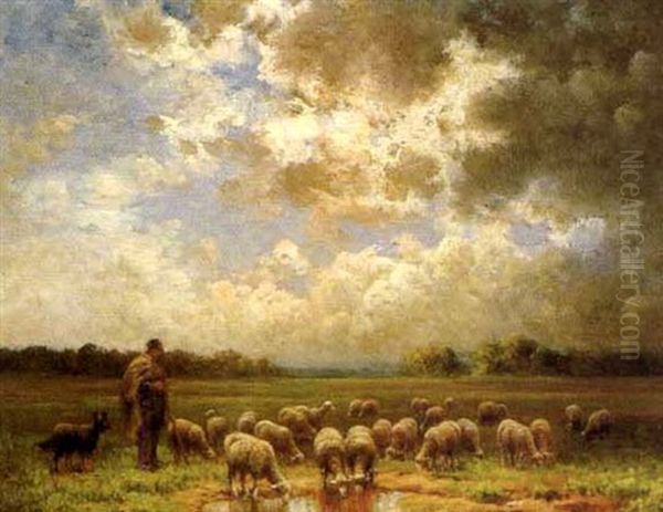 Teichlandschaft Mit Hirte Und Schafherde