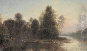 Flussuferpartie Mit Booten Und Figurenstaffage.