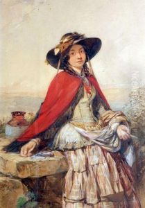 Girl Seated By A Well