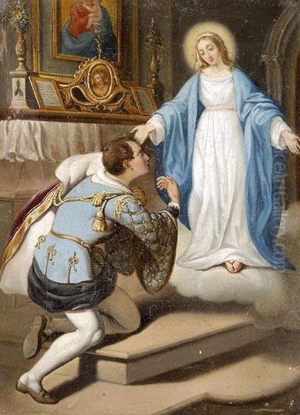 Bring the timeless beauty of Paul Franz Kunl's Szuz Maria Megjelenik Egy Nemes Ferfinak into your home with a handmade oil painting reproduction. Carefully recreated on canvas by skilled artists using traditional techniques, this piece captures the delicate brushwork, subtle light, and vibrant color of the original masterpiece. With museum-level quality and rich texture, it brings elegance and artistic depth to any space. Enjoy free shipping and make this masterpiece a part of your personal collection.