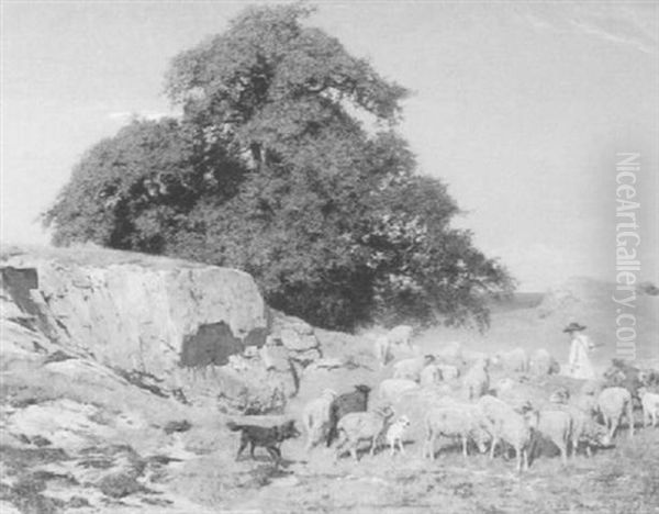 Harzlandschaft Mit Schafherde, Motiv Bei Blankenburg Am Harz Oil Painting by Paul Friedrich Meyerheim